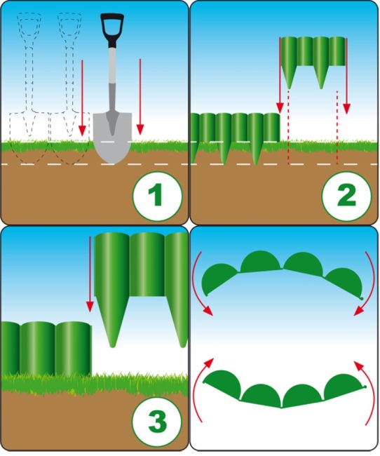 Palisáda účinně odděluje trávníky od výsadby v zahradě. Odděluje chodníky, cesty a tematické rohy. Inovativní design zajišťuje trvanlivost při zasunutí do země. Jednoduchost spojování prvků umožňuje snadnou a rychlou montáž. Flexibilita v horizontální rovině poskytuje neomezené možnosti jejího tvarování.