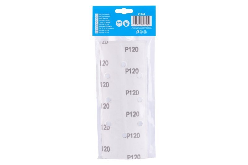 Brusný papír - sada 5kusů, zrnitost: 120, typ : 8 otvorů - Black&Decker, druh zrna: oxid hlinitý, pojivo: syntetická pryskyřice, podkladový materiál: pružný papír C (110-135g/m2), rozměry : uvedeny v názvu výrobku, balení : blistr s papírovou kartou s eurootvorem.
