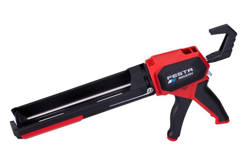 vnitřní celokovová konstrukce posuvu pístu, ergonomicky tvarovaná a zesílená páka posuvu, pogumovaná opěrná rukojeť a úchopová část na těle pistole - pohodlnější práce a efektivní přenos síly