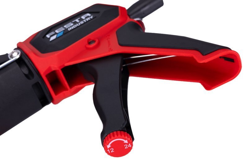díky masivní, zesílené konstrukci a použitému materiálu s obsahem nylonu je pistole lehká, ale dostatečně robustní - vytlačovací síla až 250 kg
