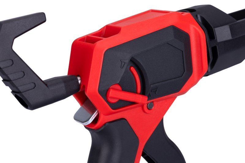 dvě varianty vytlačování, přepínač v horní poloze automatické zastavení úniku tmelu nebo lepidla - čistá práce bez zbytečného plýtvání, přepínač v dolní poloze souvislé tmelení / lepení