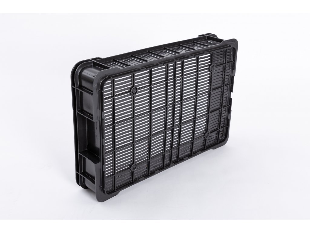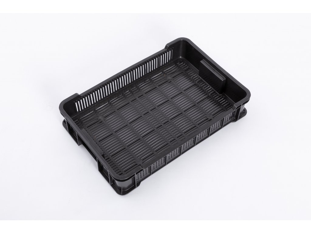 Perforovaná přepravka vhodná na ovoce a zeleninu, která zaručuje proudění vzduchu a tím i delší životnost potravin. Nízká hmotnost. Standardní barva zelená a černá. Přepravky výráběné z recyklátu. Hmotnost přepravky 1,20 kg.
