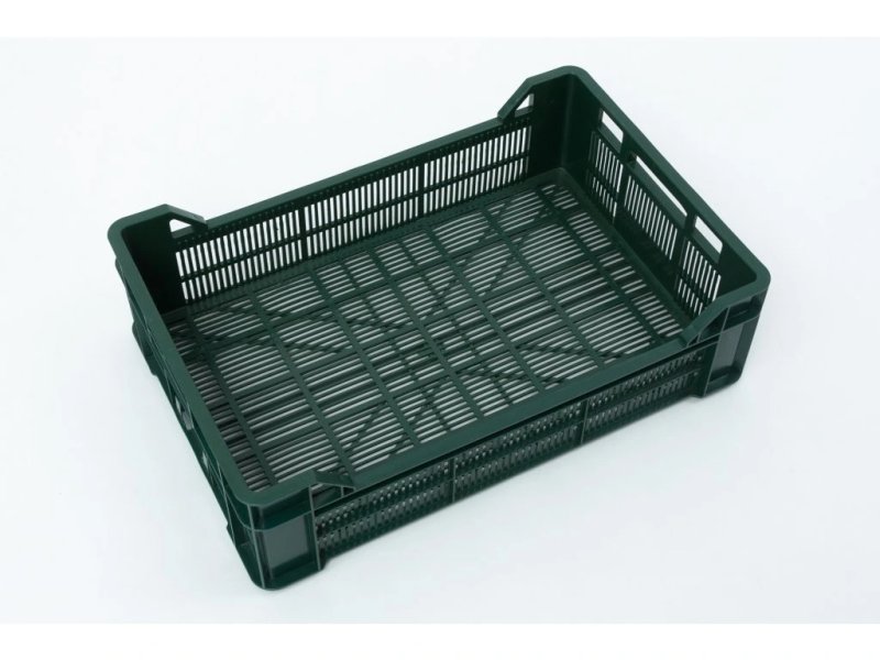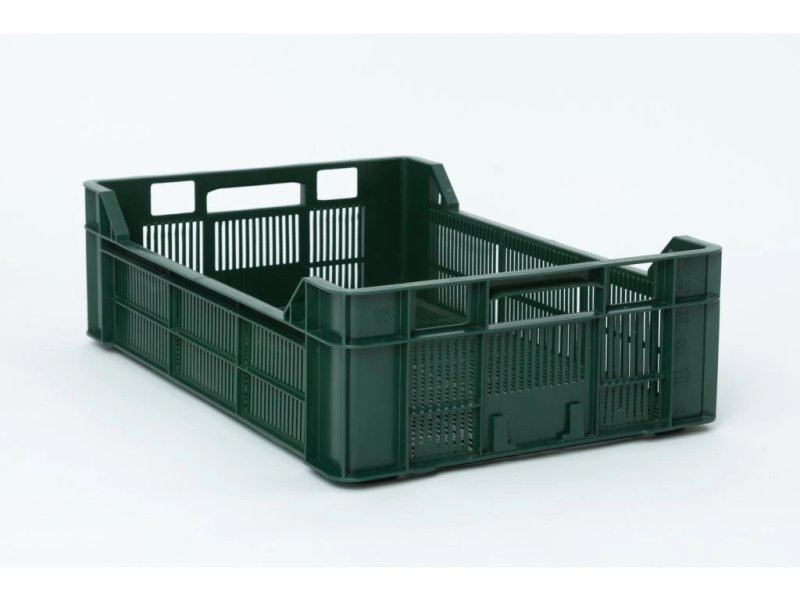 Perforovaná přepravka vhodná na ovoce a zeleninu, která zaručuje proudění vzduchu a tím i delší životnost potravin. Nízká hmotnost. Standardní barva zelená. Přepravky jsou vyráběné z recyklátu. Hmotnost přepravky 1,20 kg.