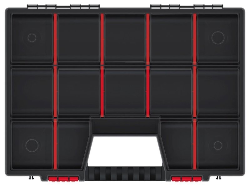 Potřebujete mít drobnosti jako jsou šroubky, vruty, vrtáky a podobné drobnosti po ruce? Pořiďte si organizér, který vám to umožní. Navíc má transparentní provedení, proto už nikdy nic nebudete hledat. Okamžitě uvidíte kolik máte spojovacího materiálu nebo něčeho jiného. Organizér je opatřen plastovou rukojetí pro snadný přenos a nastavitelnými přihrádkami.