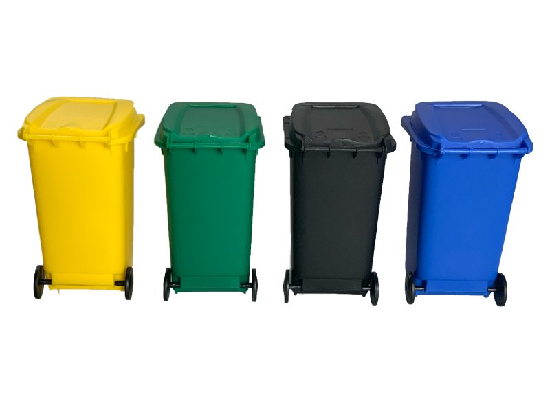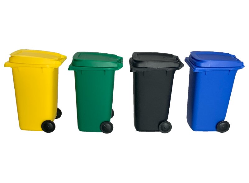 Popelnice stojan na psací potřeby černý, žlutý, modrý, zelený plastový
