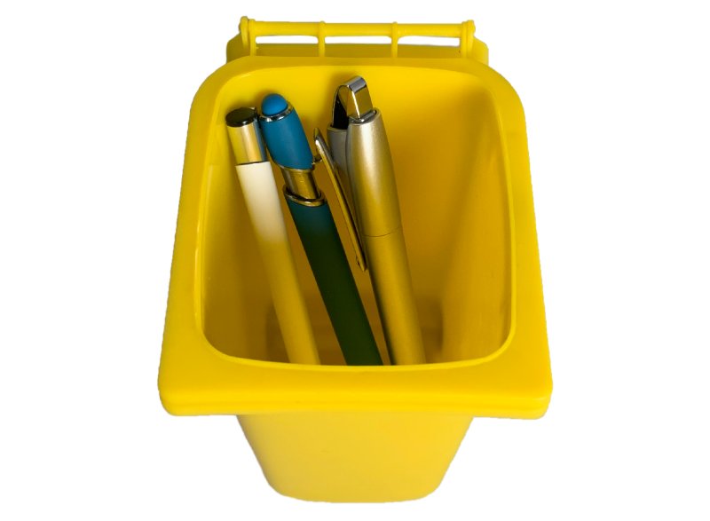Přineste do své kanceláře nebo pracovny trochu originality s tímto jedinečným stojanem na psací potřeby ve tvaru popelnice. Tento praktický a zároveň stylový doplněk udrží vaše pera, tužky a další psací potřeby vždy na dosah ruky.
