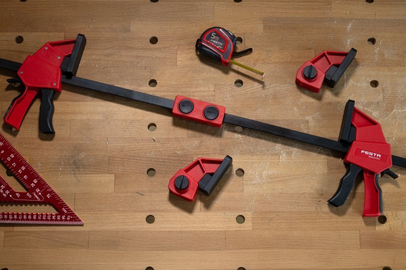 konstrukce spojky umožňuje rychle spojit dvě rychloupínací svěrky pro získání větší délky sevření
