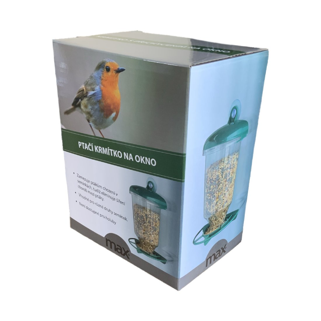 Ptačí krmítko, které se dá využít kdekoli doma, na chalupě, nebo i v zahradě. Podavač je díky svému vzhledu snadno přístupný pro menší ptactvo a nedostupný pro větší ptáky jako jsou např. holuby. Krmítko se dá upevnit buďto na okno a nebo zavěsit za větve stromu.