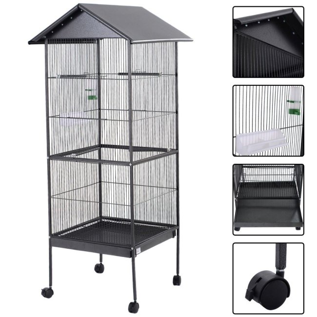 Voliéra je vybavena kolečky pro snadné přemístění.