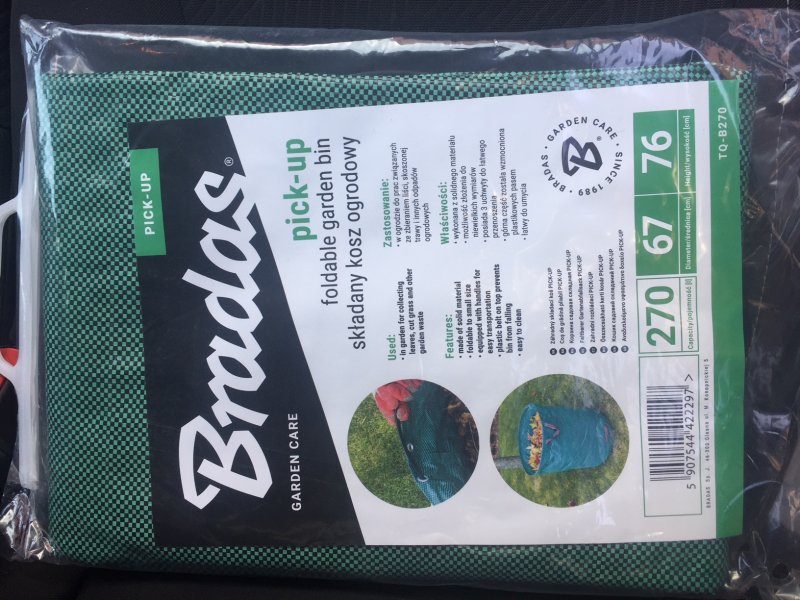 Multifunkční koš na zahradu „pick-up“ pro přepravu listí, trávy a plevele. Koš je prostorný, odolný a má všité úchyty pro přenášení. Posílení plastového pásu v horní části koše, aby se zabránilo překlopení.