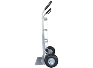 Značkový hliníkový, manipulační rudl s maximální nosností 150 kg a s nafukovacími koly je univerzální vozík, který vám bude nápomocný při přepravě materiálu po různém povrchu, např. po chodníku, trávě, nezpevněných plochách, skladech, výrobních halách, atd.