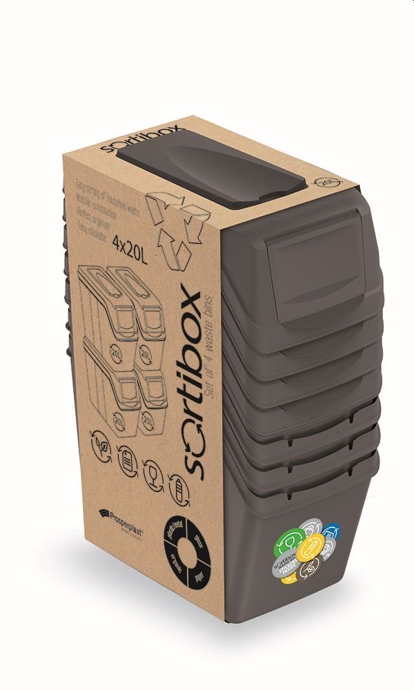 Sada 4 odpadkových košů SORTIBOX I - objem: 4x20 l, barva: šedý kámen