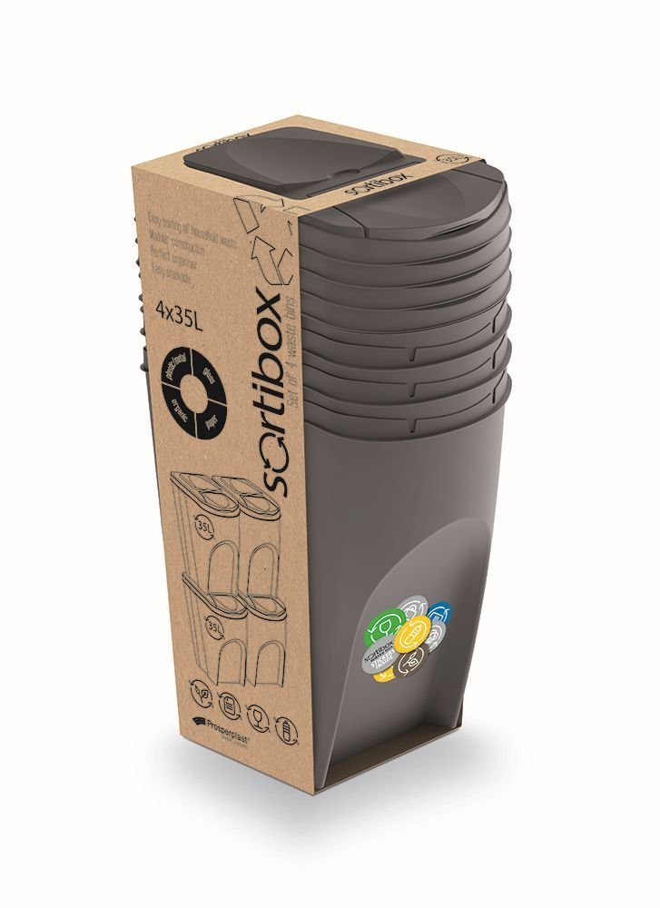 Sada 4 odpadkových košů SORTIBOX IV šedý, objem 4x35L
