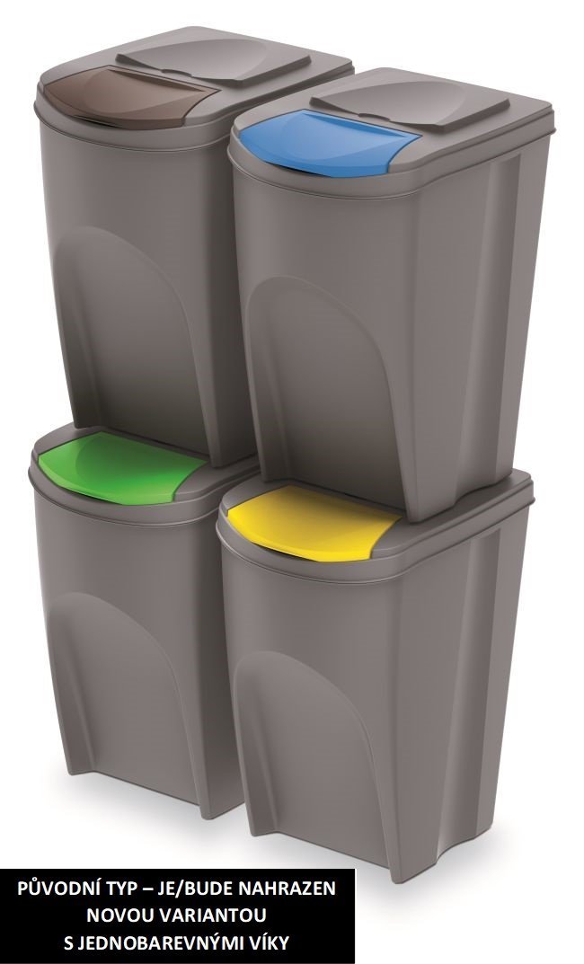 UPOZORŇUJEME, ŽE U TOHOTO TYPU ODPADKOVÉHO KOŠE MŮŽE BÝT K DISPOZICI JEŠTĚ PŮVODNÍ VARIANTA S BAREVNÝMI VÍKY. Z TOHOTO DŮVODU NEMŮŽEME ZARUČIT, ŽE BUDE ODESLÁN KONKRÉTNÍ TYP (S BAREVNÝMI NEBO JEDNOBAREVNÝMI VÍKY). V RÁMCI JEDNÉ OBJEDNÁVKY BUDOU EXPEDOVÁNY VŽDY KOŠE V JEDNÉ SHODNÉ VARIANTĚ. V PŘÍPADĚ UPŘEDNOSTNĚNÍ KONKRÉTNÍHO TYPU NÁS PROSÍM KONTAKTUJTE.