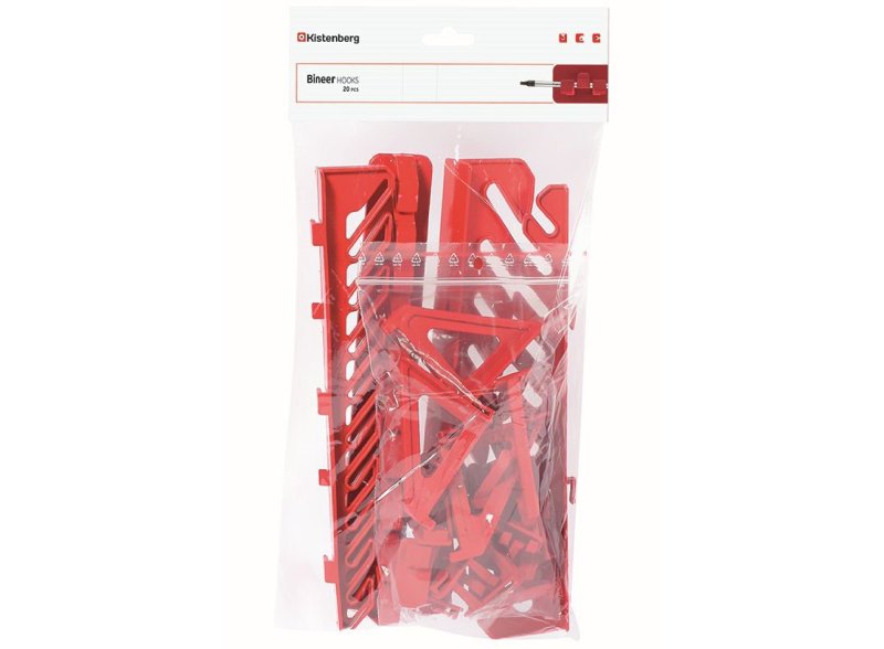 Sada držáků Bineer Hooks na montážní panely, červené, 20 ks