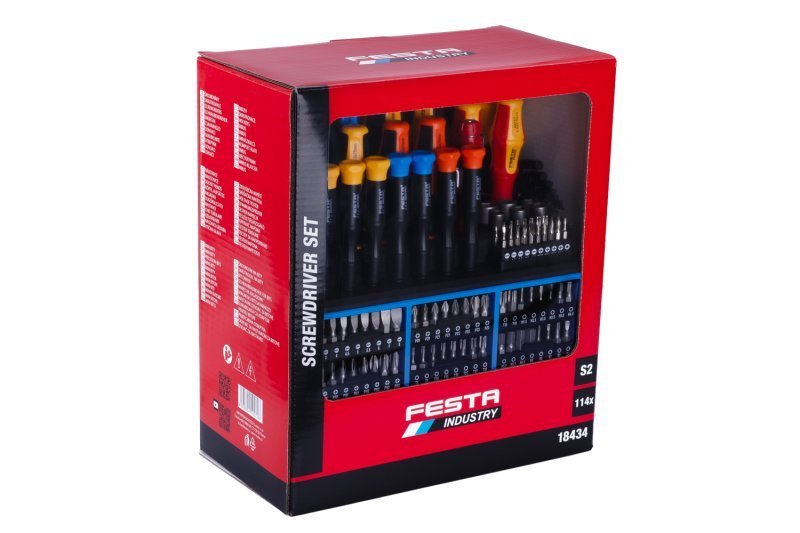 Sada FESTA INDUSTRY šroubováky, bity, minibity a inbusy S2/CrV 114ks