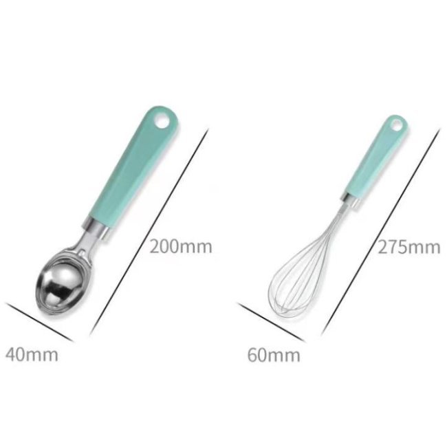 Unikátní sada kuchyňského náčiní s praktickým stojánkem. Rukojeť je vyrobena z PP a zbylá část náčiní je z nerezové oceli. Kuchyňská sada vydrží teploty od -30°C do 230°C.