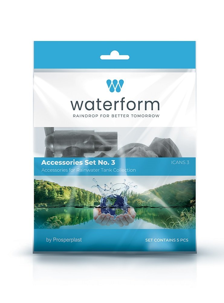 ICANS3 - Systém pro přívod a odvod dešťové vody ze sudu. Kohoutek je opatřen těsněním a maticí, díky které je kompatibilní se všemi sudy na dešťovou vodu sortimentu Waterform. Sada obsahuje 5 dílů: 3 redukce; lapač vody; kohoutek.