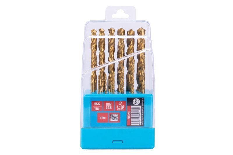 Sada vrtáků HSS DIN 338, RN s ochrannou vrstvou TiN proti otěru, je vyrobená z kvalitní rychlořezné oceli (HSS). Přesné vyrobená šroubovice pro kvalitní výkon, přesnost a dobré středění, vybroušení úhlu špičky vrtáku 118°, pro vrtání běžné konstrukční oceli, baleno v PVC krabičce.
