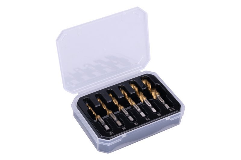 sada závitových vrtáků pro průměry M3, M4, M5, M6, M8, M10 se šestihrannou stopkou 1/4"