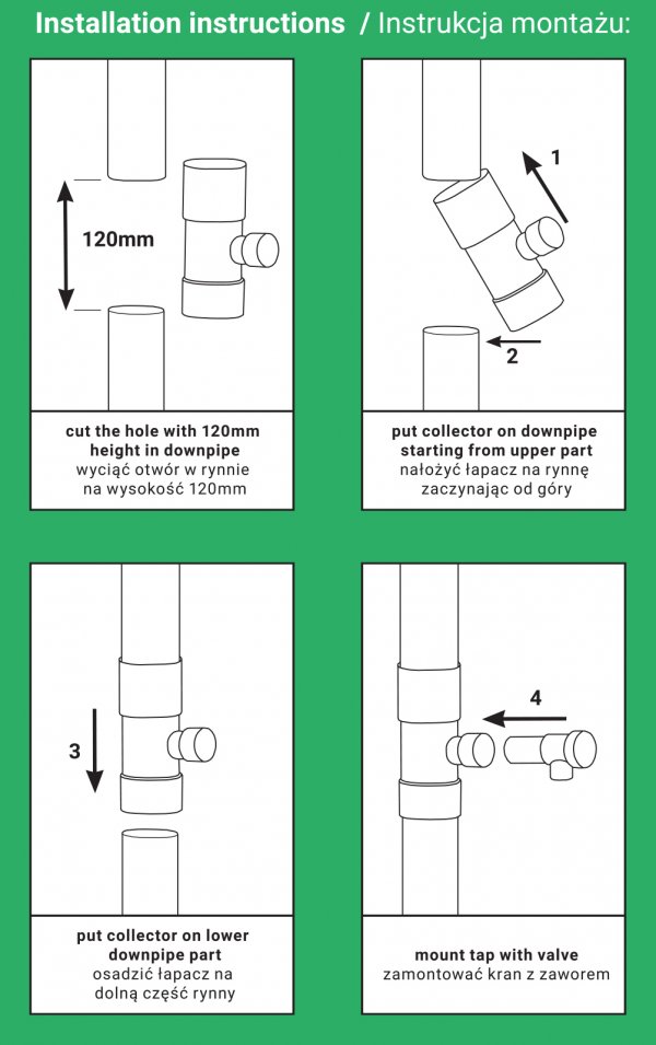 - kolektor lze použít pro PVC a kovové odtokové trubky o průměru: 100 mm