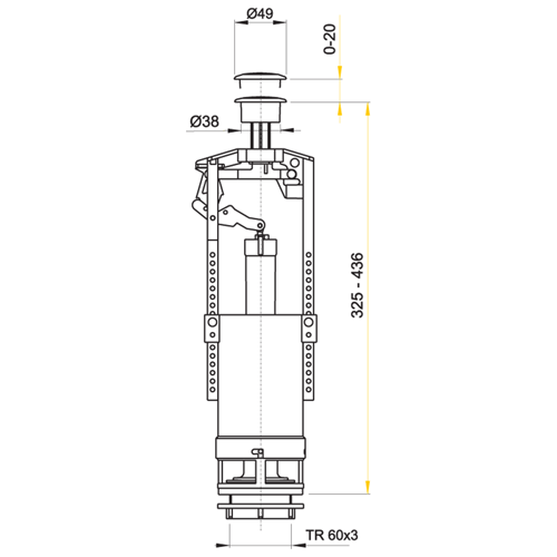 Splachovací mechanismus A05 pro wc. Detailní rozměry naleznete v obrázku č.2