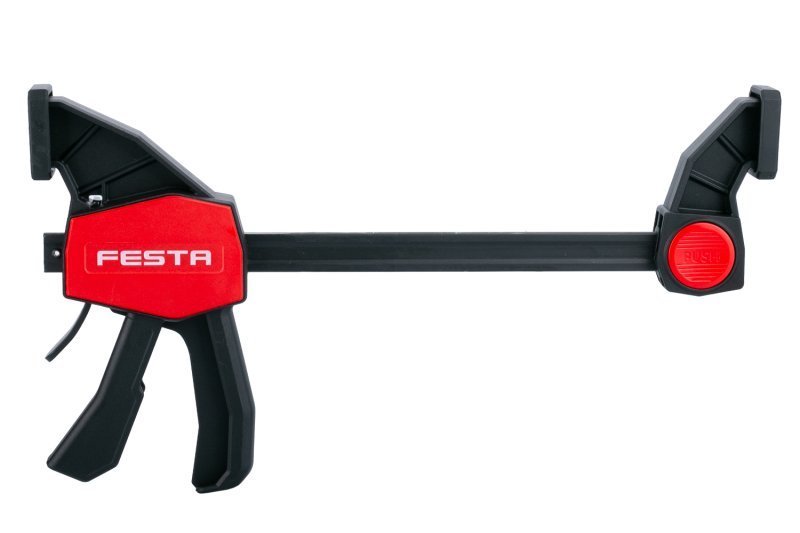 svěrka rychloupínací tvrzená ocelová lišta, profilovaná ramena z ABS plastu - neklouzavé gumové svírací plochy rychlé a přesné nastavení, pevné a silné sevření pomocí páky jednoduchý mechanismus pro rychlou a snadnou úpravu svěrky z upínání na rozpínání pro jednoduchou, rychlou a pevnou fixaci jak v profesním tak i domácím použití