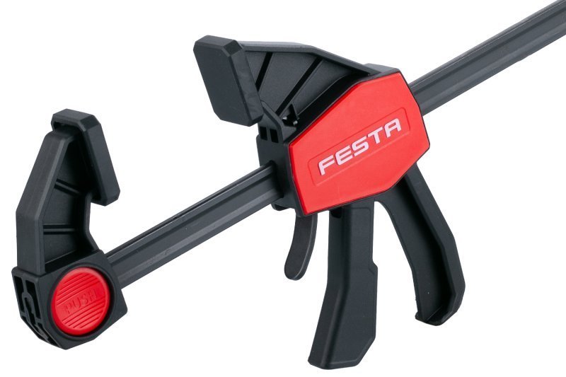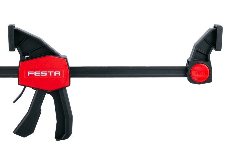 svěrka rychloupínací tvrzená ocelová lišta, profilovaná ramena z ABS plastu - neklouzavé gumové svírací plochy rychlé a přesné nastavení, pevné a silné sevření pomocí páky jednoduchý mechanismus pro rychlou a snadnou úpravu svěrky z upínání na rozpínání pro jednoduchou, rychlou a pevnou fixaci jak v profesním tak i domácím použití