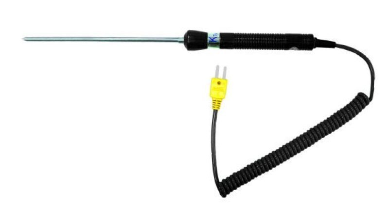 Čidlo teploty typu K pro měření teploty vzduchu a plynu. Tepelně odolná rukojeť. Snímač teploty chráněný kovovým krytem ( prům. 6,5mm ). Délka snímače: 165mm. Rozsah měření: -50 °C … 800 °C, třída přesnosti 2. Pouze pr ThermoMaster a ThermoSpot Vision.