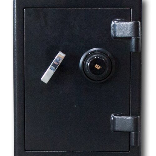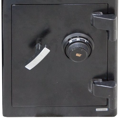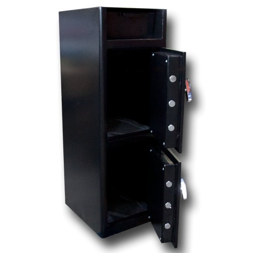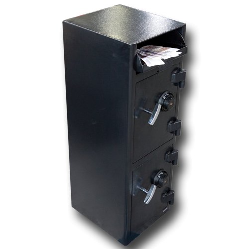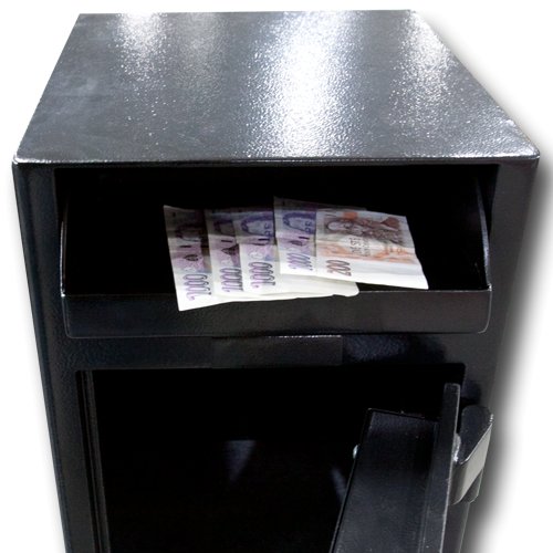 Trezor je dvoudílný, vrchní i spodní uzamykatelné dveře jsou vybaveny kódovými zámky, vrchní uzamykatelná část trezoru je propojena s vhozem.