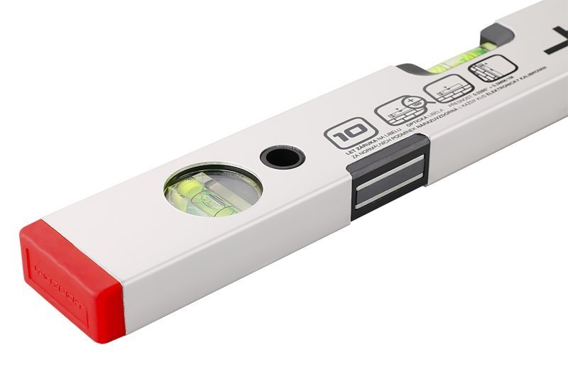 inovovaná horizontální válcová libela - snadná viditelnost ze všech úhlů pohledu dvojité kroužky v libele - vnější kroužky pro sklon 2% výraznější fluorescenční kapalina pro lepší viditelnost bubliny na slunci i v horších světelných podmínkách vodováha se dvěma libelami přesnost 0,5mm/m = 0,0285° tloušťka stěny ALU profilu 1,5 mm, eloxovaný otěruvzdorný povrch magnetické provedení - silné magnety, pro práci v zámečnictví, usazování kovových zárubní, atd. vodováha je odolná proti provozním nárazům 10 let záruka na libely, KAŽDÝ KUS ELEKTRONICKY TESTOVÁN
