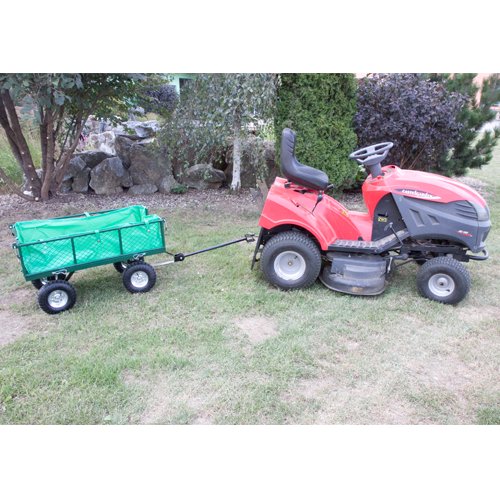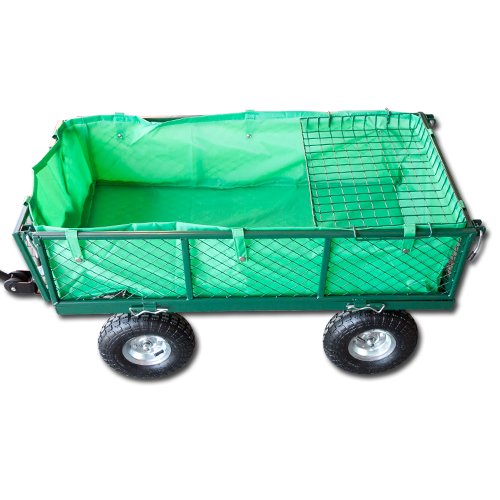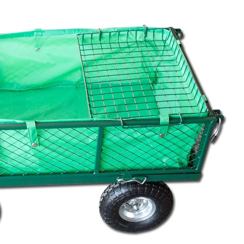 Ruční zahradní vozík s výklopnými boky a plachtou má stabilní kovovou konstrukci s pevnými pneumatikami a dvojitou nápravou. Korbička má objem 85 litrů a nosnost až 300 kg. Díky stabilní rukojeti je přepravní vozík snadno ovladatelný a je vhodný pro práci jak v zahradnictví, tak i na stavbě. Vozík je možno připojit i za zahradní traktor.