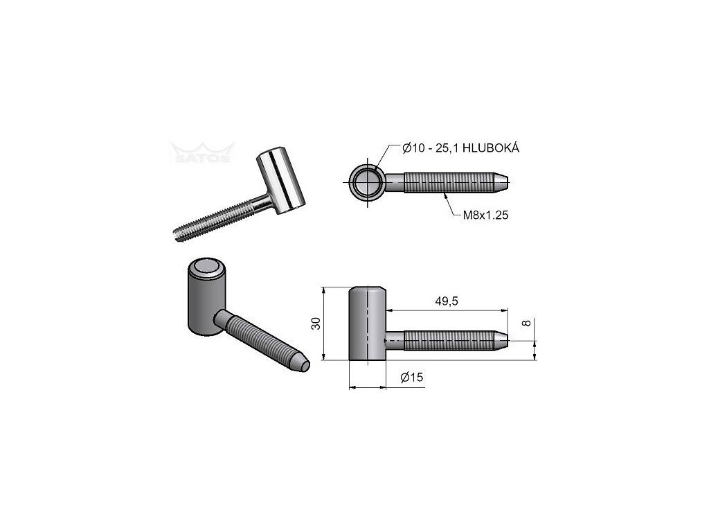 Závěs dveřní 60/10 VD M8 Ni SATEN 96068D00