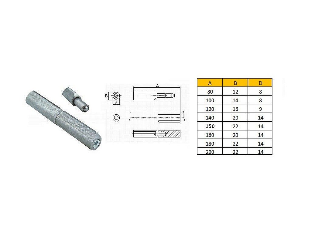 Závěs k přivaření s kuličkou seřiditelný 120x16mm, čep 9mm