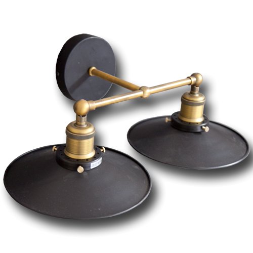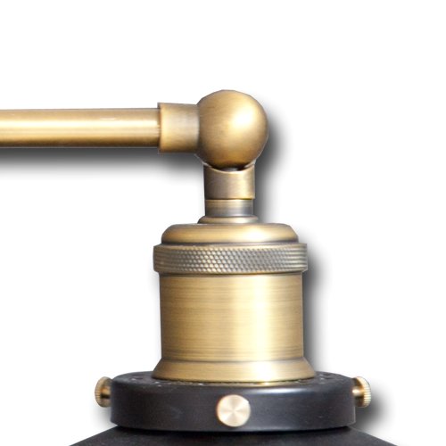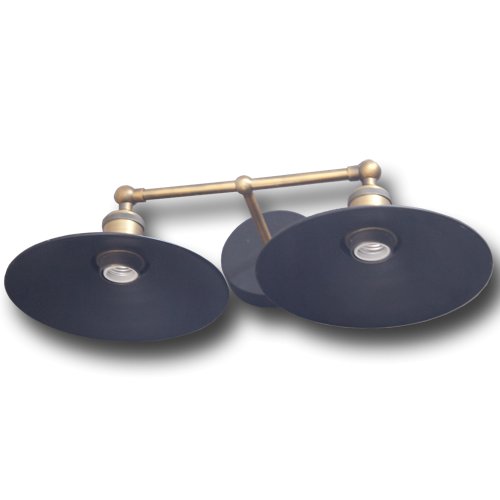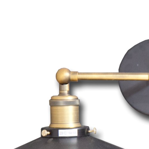 Stínítka světel jsou vyrobena z matného černého plechu, která jsou na zdi připevněna mosazným držákem zakončeným krytkou ze stejného materiálu jako stínítka.