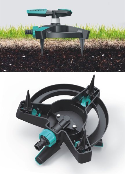 precizní úroveň zpracování a kombinace použitých materiálů řadí výrobky FESTA AQUTATIC mezi profesionální značky v zavlažování zavlažovač otočný tříramenný speciální konstrukce ramen zavlažovače umožňuje otáčením změnit úhel rozstřiku základna s výklopnými hroty pro stabilní umístění zavlažovače napojení na rychlospojku nebo STOP-rychlospojku kompatibilní s produkty ROSA