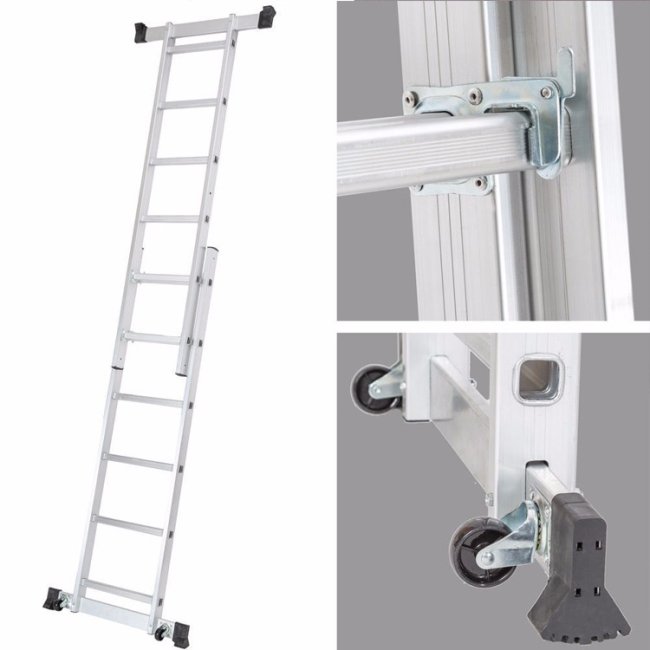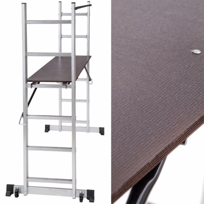 Žebříky lze použít samostatné bez plošiny jako dvoják (A) nebo po spojení dvou žebříků jako dlouhý žebřík. Díky kolečkům se umožňuje lehká manipulace s lešením.