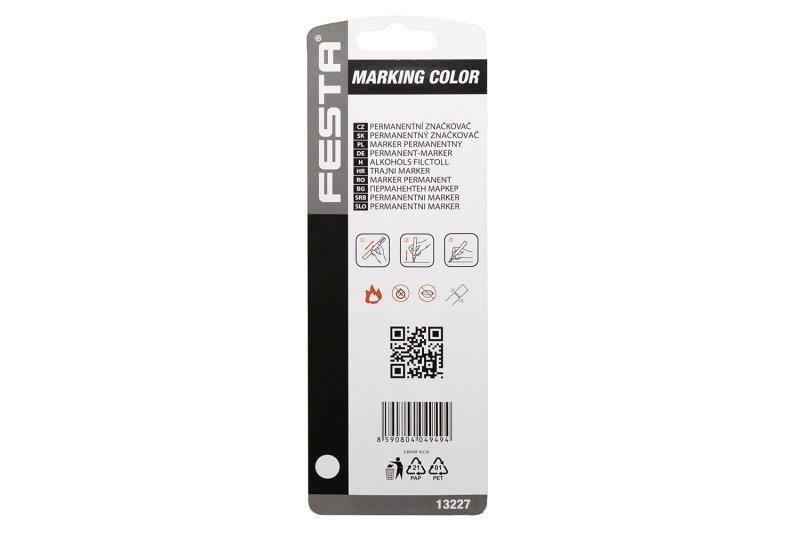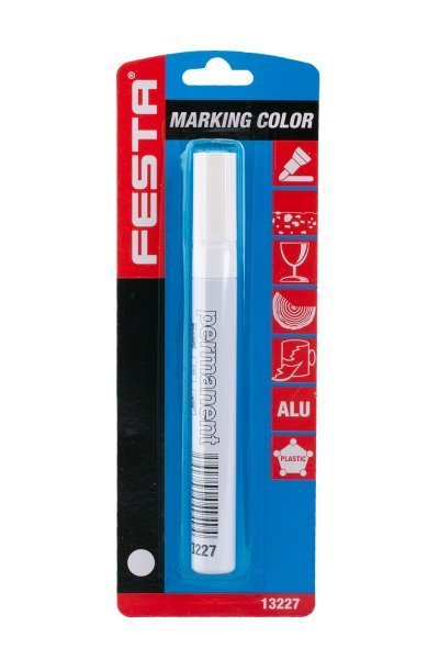Speciální značkovací barva v hliníkovém pouzdře, síla hrozu 4 mm - bílý, popisy železných konstrukcí, skla, plastů, černých strečových folií a tmavých podkladů, max.80°C.