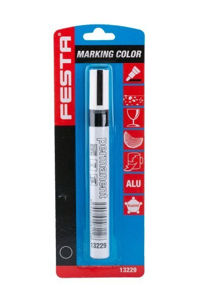 Speciální značkovací barva v hliníkovém pouzdře, síla hrotu 4 mm - černý, popisy železných konstrukcí, skla, plastů, černých strečových folií a tmavých podkladů, max.80°C.